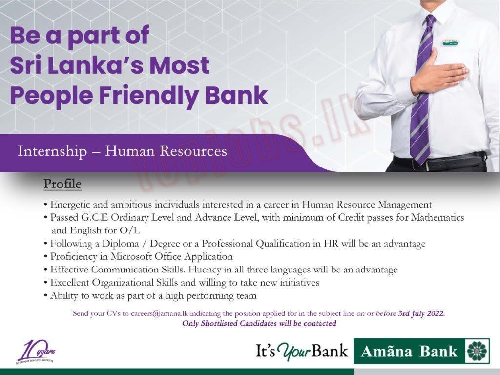 Amana Bank Internship Human Resources Job Vacancies 2022