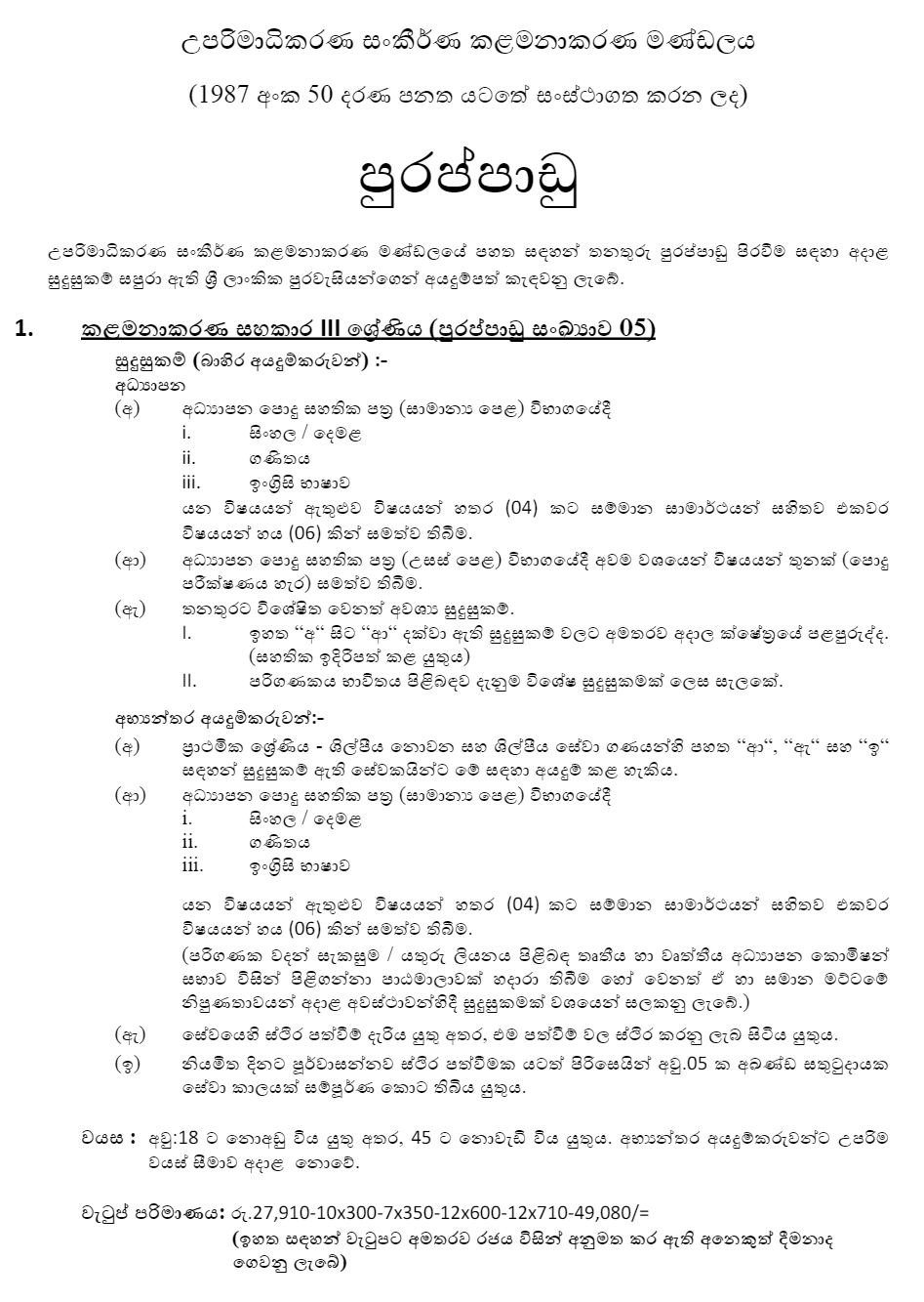 - (Having followed a course in computer word processing / typing accepted by the Tertiary & Vocational Education Commission OR any other equivalent level skill is considered as a qualification in the relevant occasions.